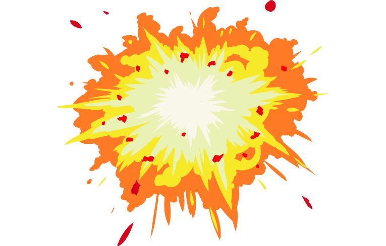 Using the Magic Wand tool, I selected the white background of the image the explosion was part of in order to delete it, leaving the explosion intact (irony) and its white background transparent; this allows me to move explosion around freely without worrying about the white 'box' interfering with other layers.